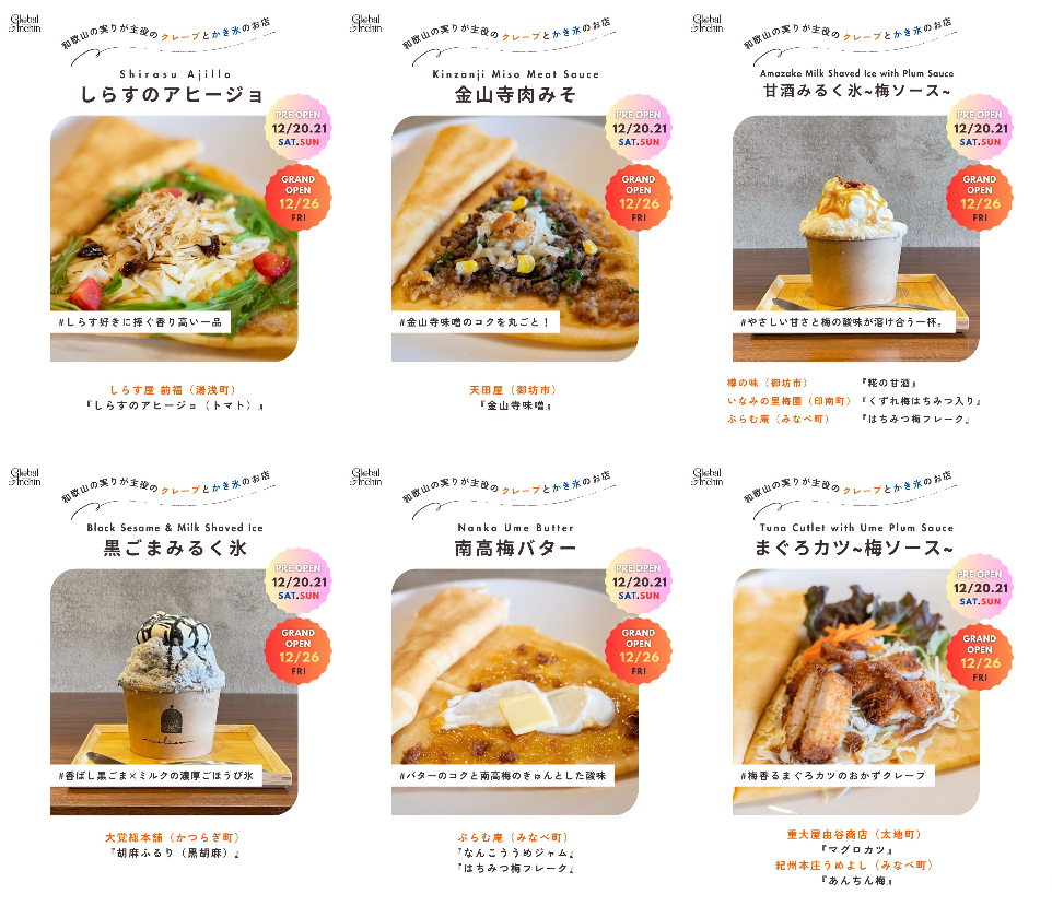 和歌山県の実りをふんだんに使用したクレープとかき氷をぜひお召し上がりください!