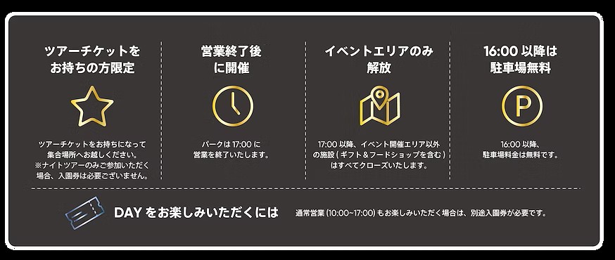 パークの営業終了後に開かれる “もうひとつの世界” 。