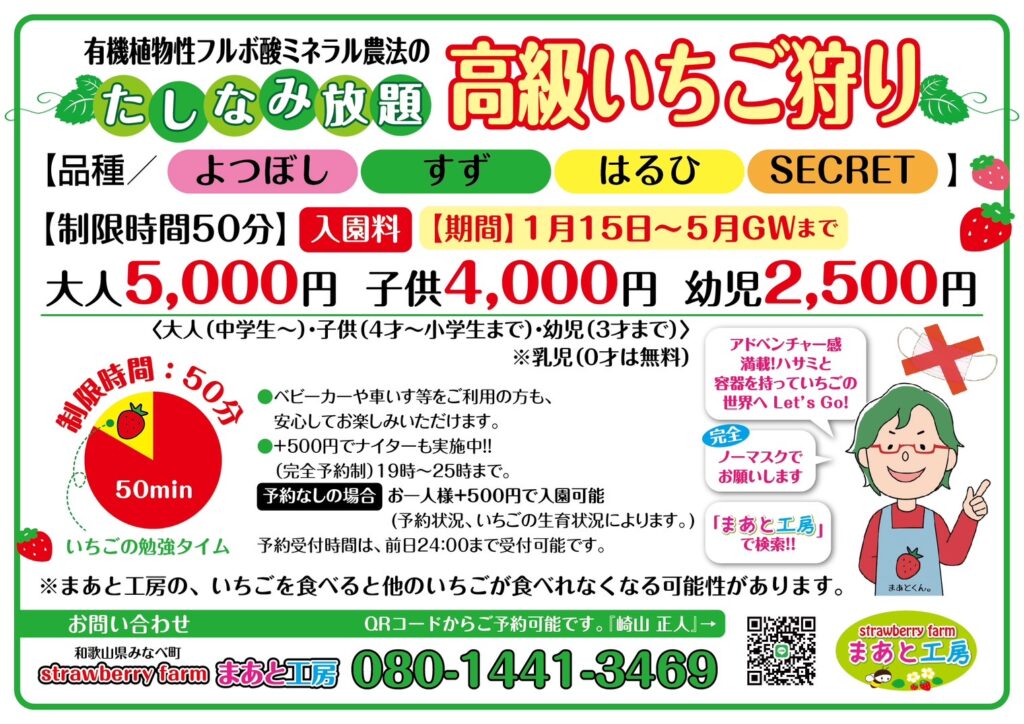 和歌山県みなべ町にある農園、strawberry farm (ストロベリー ファーム) まあと工房。