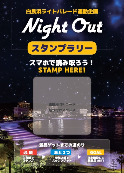 現在開催中の白良浜ライトパレードの連動企画として、南紀白浜観光協会で白良浜ライトパレードと周辺飲食店をめぐる、スタンプラリーが開催されます。
